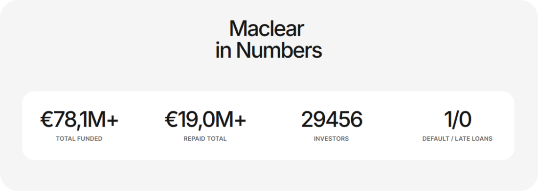 Selectivity is an important part of Maclear’s lending approach. More than 60% of loan applications do not make it onto the platform, reflecting the team’s focus on careful screening and risk discipline rather than loan volume. This approach is intended to support long-term investor confidence and portfolio stability.