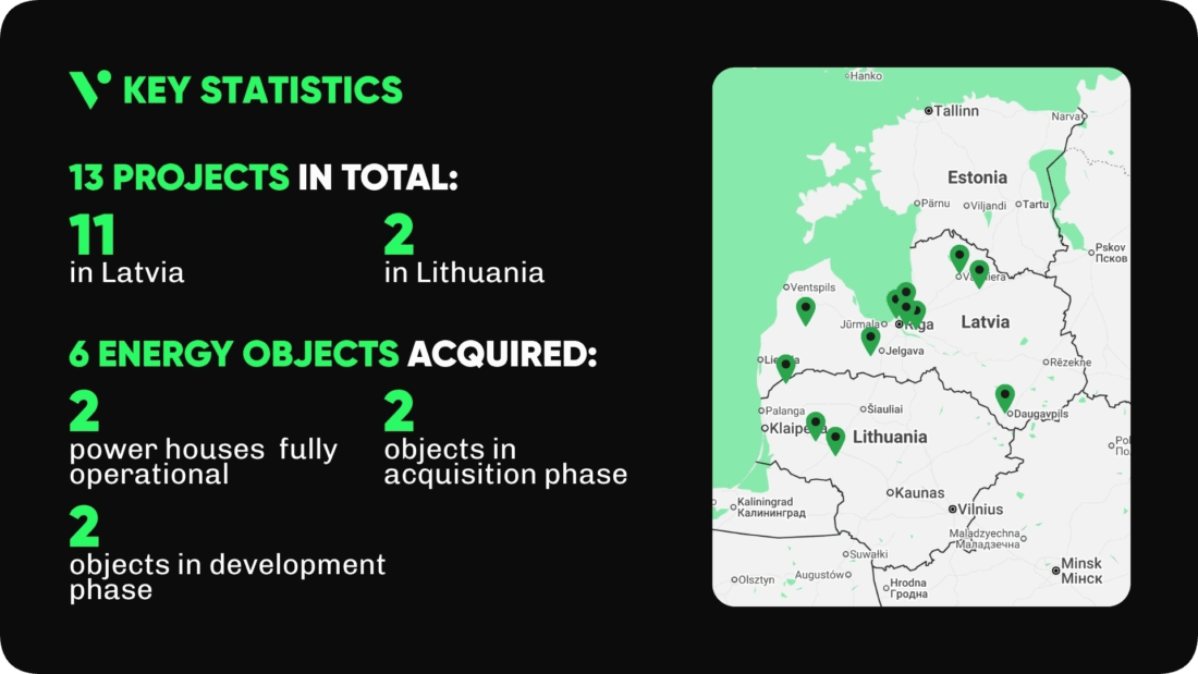 Das erste Jahr war geprägt von der schnellen Skalierung des Projektportfolios von Ventus Energy. Bis zum Jahresende verwaltete die Gruppe 13 Energieprojekte in verschiedenen Entwicklungsstadien, 11 in Lettland und zwei in Litauen, mit einer kombinierten Kapazität von etwa 200 MW, sobald sie vollständig betriebsbereit sind.