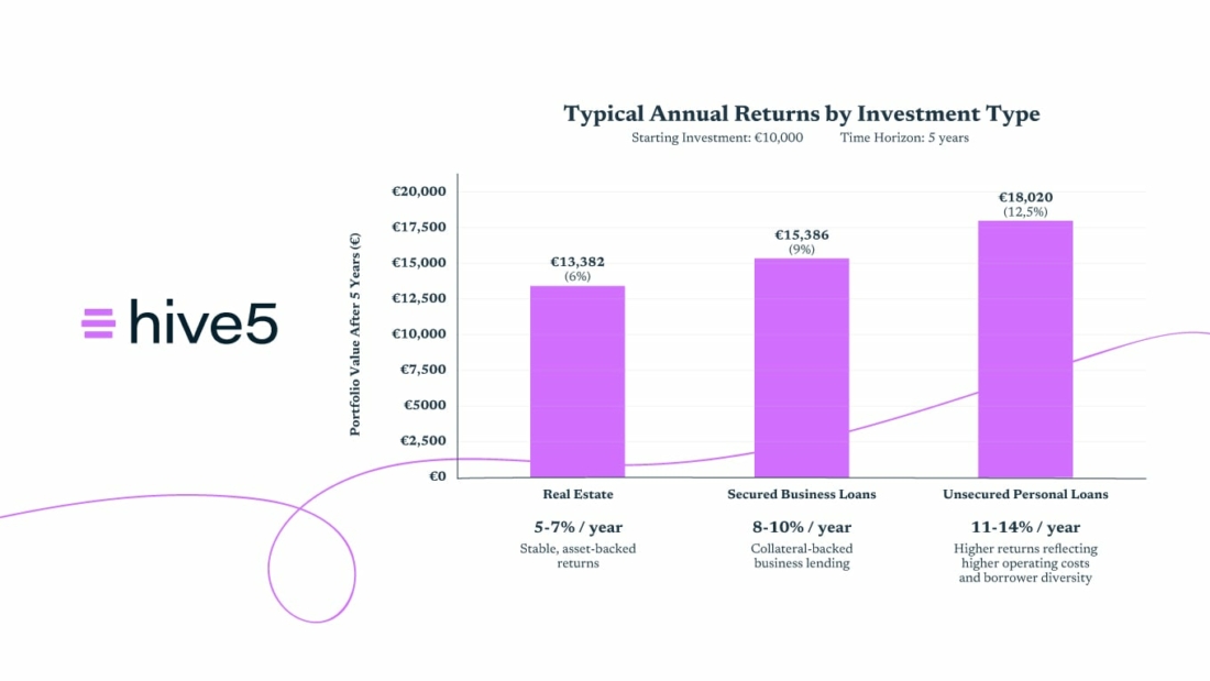 Ein Beispiel dafür, wie strukturelle Entscheidungen die Ergebnisse von Investoren beeinflussen können, ist Hive5, eine Plattform, die innerhalb eines klar strukturierten, integrierten Kreditmodells operiert. Als Teil der Hive Finance Group listet Hive5 Kredite, die von gruppeneigenen Kreditunternehmen vergeben werden. Dies ermöglicht es ihnen, Investitionsmöglichkeiten direkt an aktive, laufende Kreditoperationen anzubieten, anstatt sich ausschließlich auf einen offenen Markt zu verlassen.