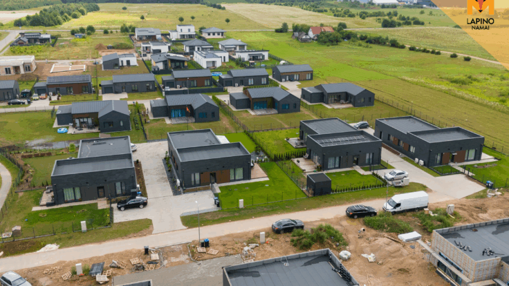 - Comfort from the very beginning: „Lapino namai" stands out by offering exclusively fully finished homes. This means you can move right in without the hassle or expense of additional renovations. This means you can move in straight away without the hassle or extra costs associated with repairs. Construction is carried out in blocks, creating stylish and coherent architectural settlements with all the necessary infrastructure.