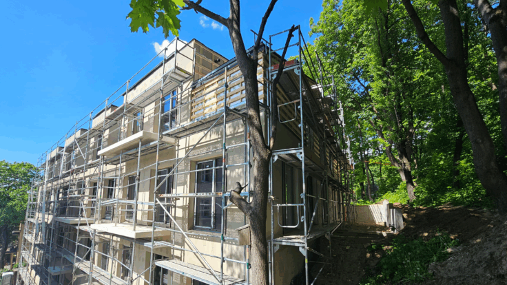 The funds raised in the last stages have been used to complete the brickwork, glazing the windows of the whole house, subdividing the rooms into separate properties, insulating the façade of the building, paying an advance to the lift supplier, installing slopes and concreting all four internal terraces. The project owner will use the funds raised in this phase to refinance the existing loan and to continue with further construction work.
