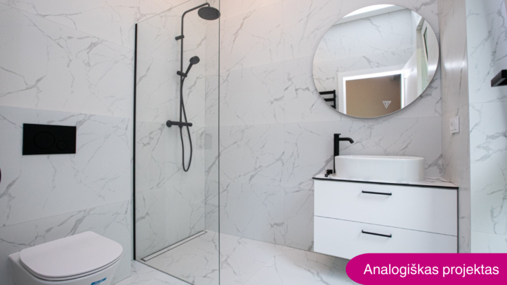 The project owner is developing a semi-detached house on the acquired land plot. The dwelling will have an area of 250 square metres, energy class A+ and two storeys. The semi-detached house will have a land plot of 0.066 hectares. The house will be sold fully finished. The expected sales income is approximately EUR 560 000.